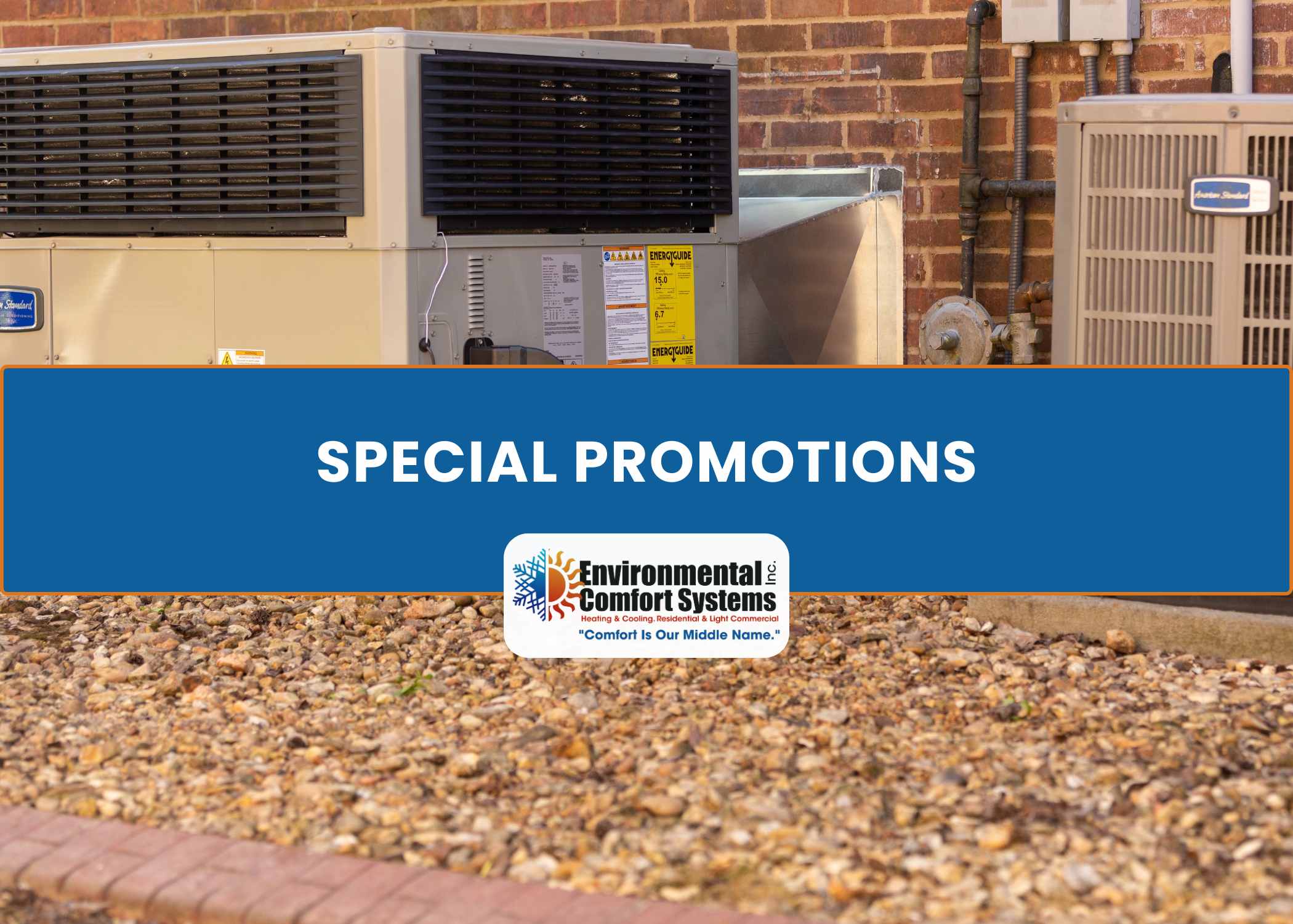 Environmental Comfort Systems and American Standard are proud to offer great promotional deals to you! If needed, we also offer financing options with approved credit, so you’re sure to get the best value when working with us!